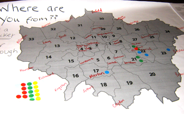 Participants to the Convergence mostly came from London, as the dots indicate on this map.